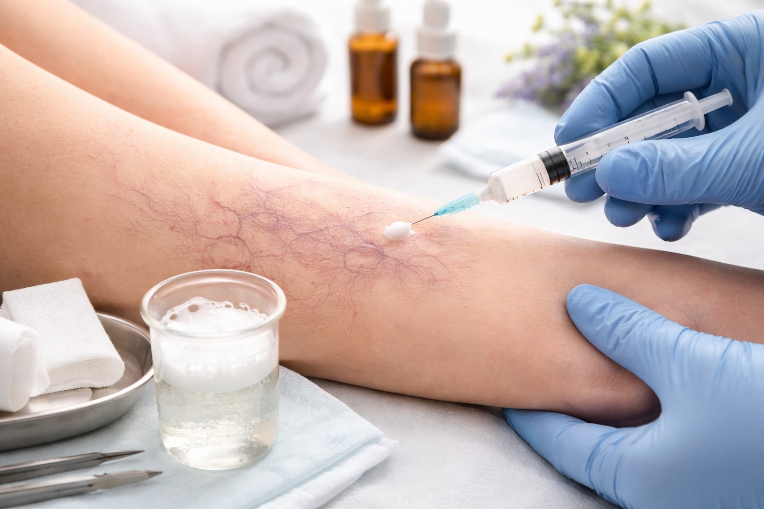 - A doctor injects a small amount of foam solution into the affected vein using a very fine needle.